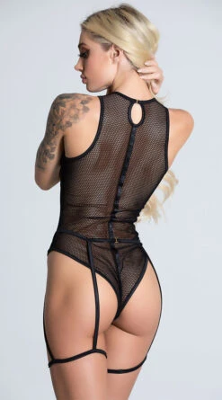 Slip into something more comfortable like this flirty babydoll set featuring sheer lace cups with strappy detailing, adjustable spaghetti straps, a back hook closure, an open underbust panel, a sheer mesh and lace skirt, and a matching panty with a cheeky cut back.