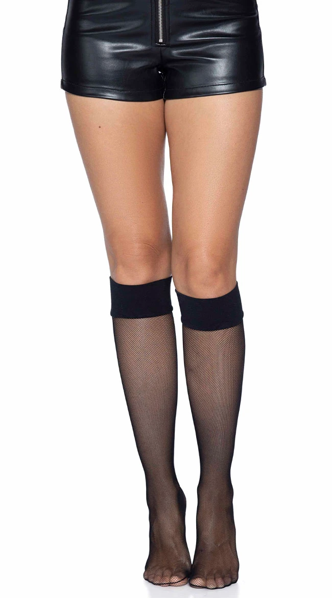 Add a sexy touch to your preppy look with these micro fishnet knee high socks featuring a thick, opaque top. (Shorts not included.)