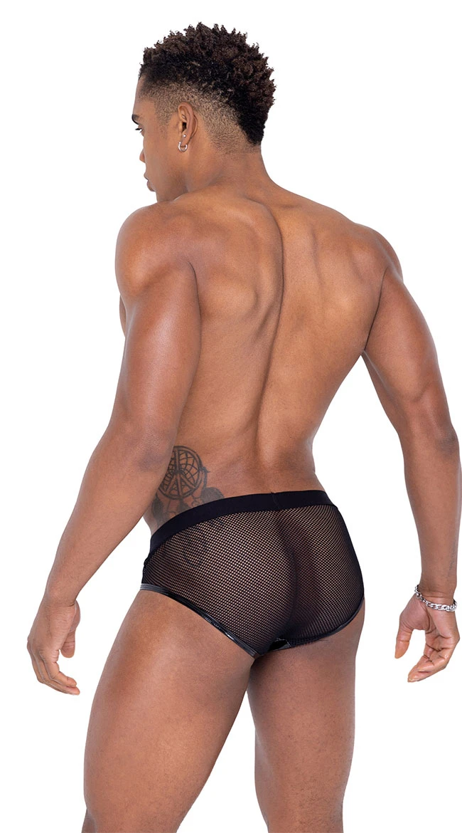 Roma Men’s Studded Vinyl And Fishnet Briefs
