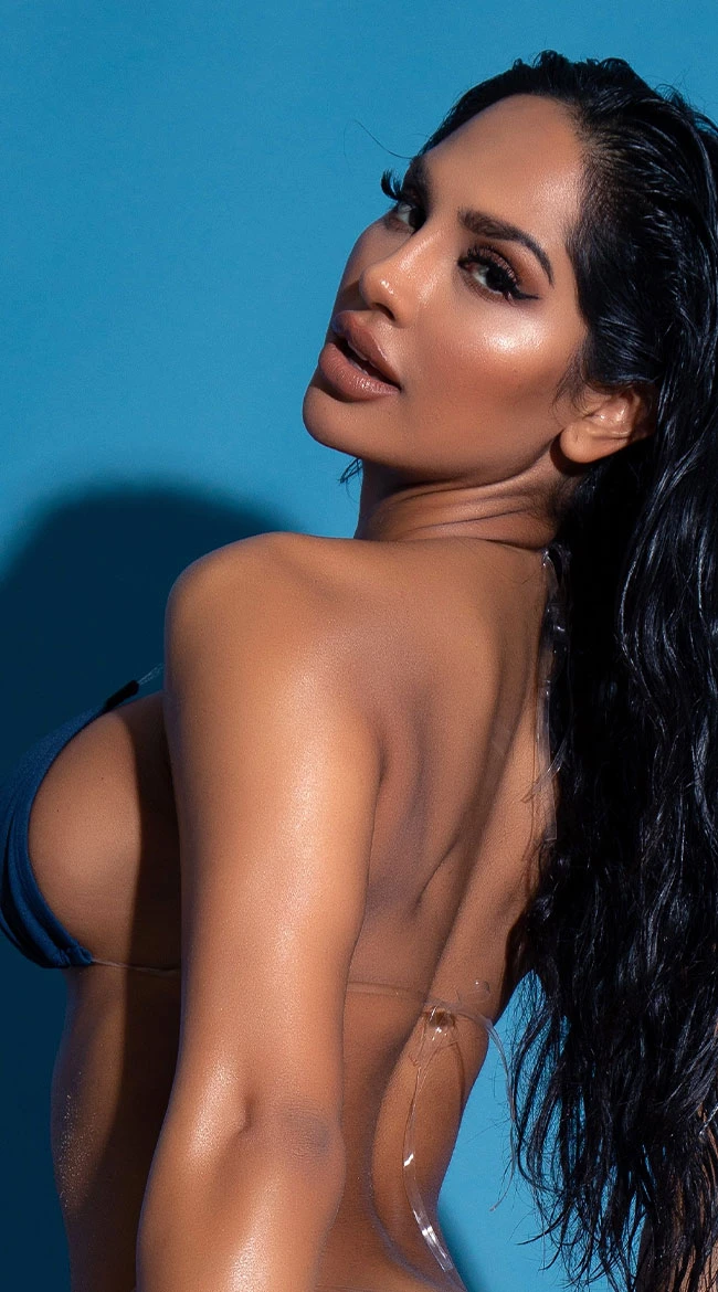 Create an enticing illusion in this exclusive bikini top featuring adjustable triangle cups with clear straps, halter ties, and a tie back closure.